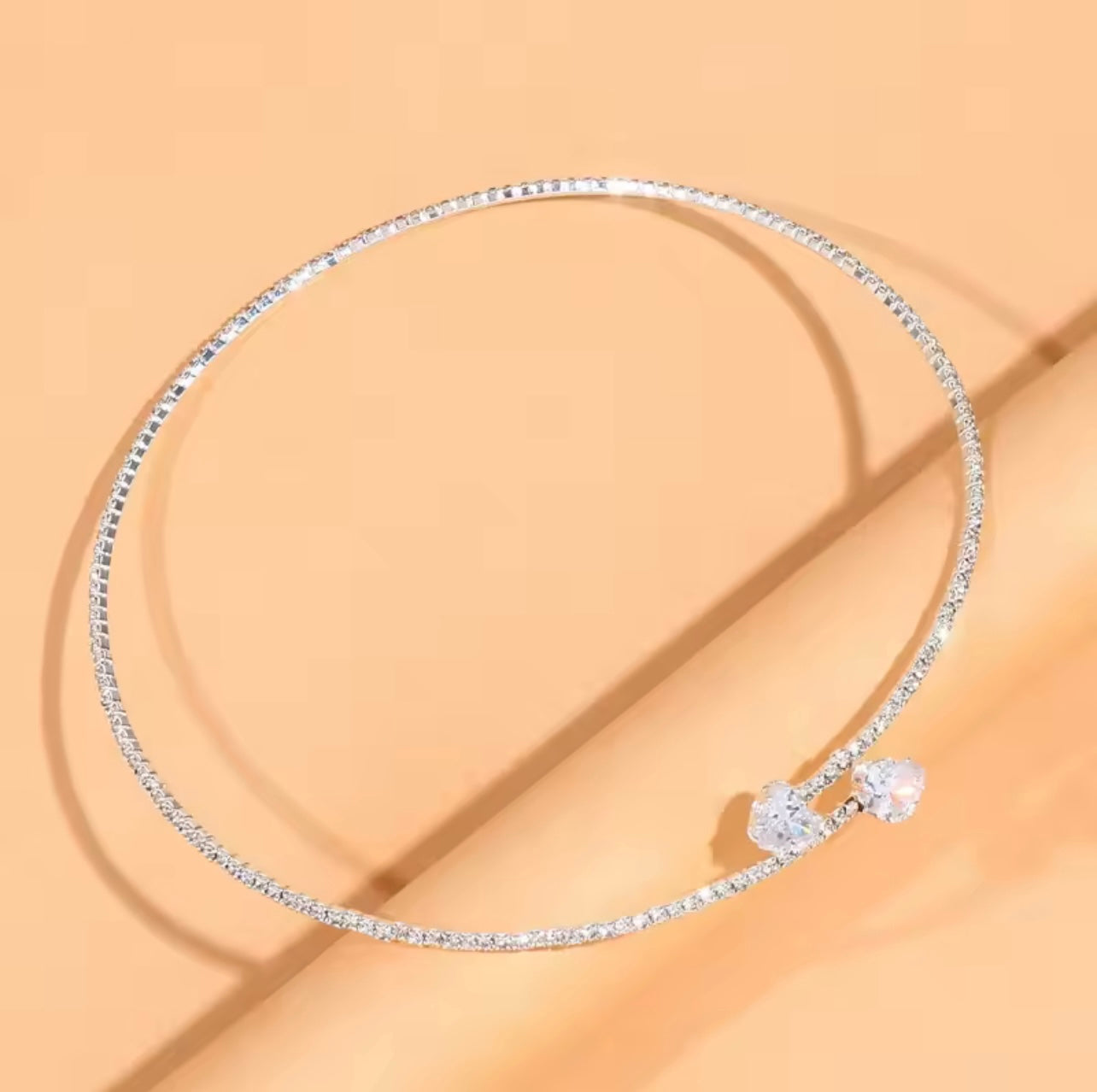 Die Elara-Halskette ist der Inbegriff von stilvoller Raffinesse. Feine Strasssteine funkeln bei jeder Bewegung und fangen das Licht wie kleine Diamanten ein. Das filigrane Design umschmeichelt den Hals und verleiht jedem Look eine luxuriöse Ausstrahlung – ob bei festlichen Anlässen, einem romantischen Dinner oder als glamouröses Highlight im Alltag.